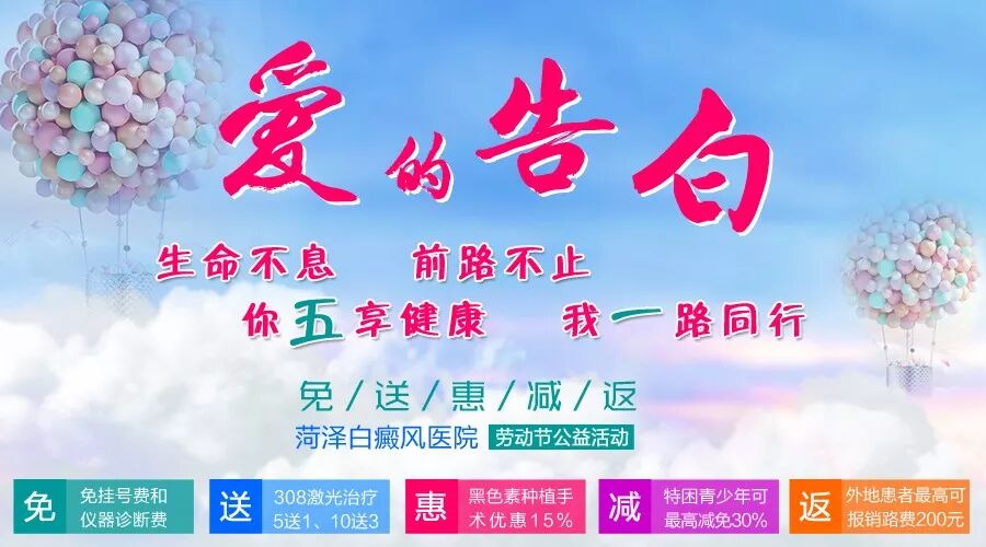 春生、夏长,春天已悄然走去,夏天也缓步而来。五月随着气温不断升高,白癜风进入高发季节,同时也是治疗的最佳时节。为帮助广大患者做好夏季白癜风的治疗,菏泽白癜风医院特展开“五享健康、一路同行——爱的告白”公益活动,让更多的白癜风患者早日康复,一生无忧。